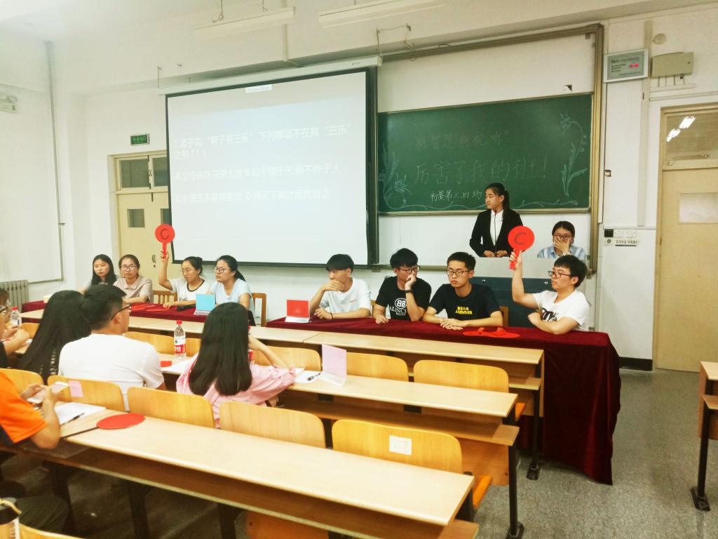 “‘新智慧•新视听’厉害了,我的班!”初赛分为抢答、绘图、必答和配音四个环节,采用两两对决的形式进行。比赛过程中,各支队伍不甘示弱,积极抢答,强强对决,吸引住了观众的目光,尤其是最后的配音环节,双方选手感情丰富,真情配音,感染了很多评委和观众,赢得了大家的掌声。最终,数师本1701班获得本场比赛的最高分直接晋级决赛,应统本1701班、数学本1702班、信计本1701班和统计本1701班成功晋级半决赛。