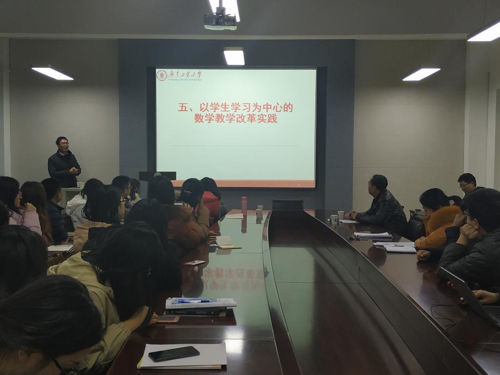 近日,广东工业大学王振友教授应邀到我校开展学术交流活动,并在南四教学楼306会议室做了题为“以学生学习为中心的数学教学改革”的学术报告。学院部分教师以及全体研究生到场听取了报告。