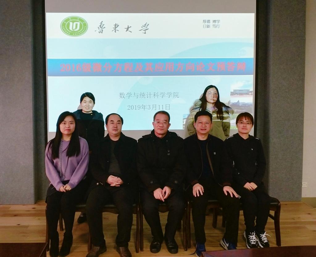 2019年3月11日下午2点半,数学与统计科学学院于南四306会议室举行2016级微分方程及其应用方向学位论文预答辩会。本次预答辩会由沈春教授担任预答辩组长,赵建东教授、孙梅娜教授、樊永红副教授担任预答辩小组成员。学院秘书韩丹丹老师出席了预答辩会,2017级全体微分方程及其应用方向研究生到场观摩。