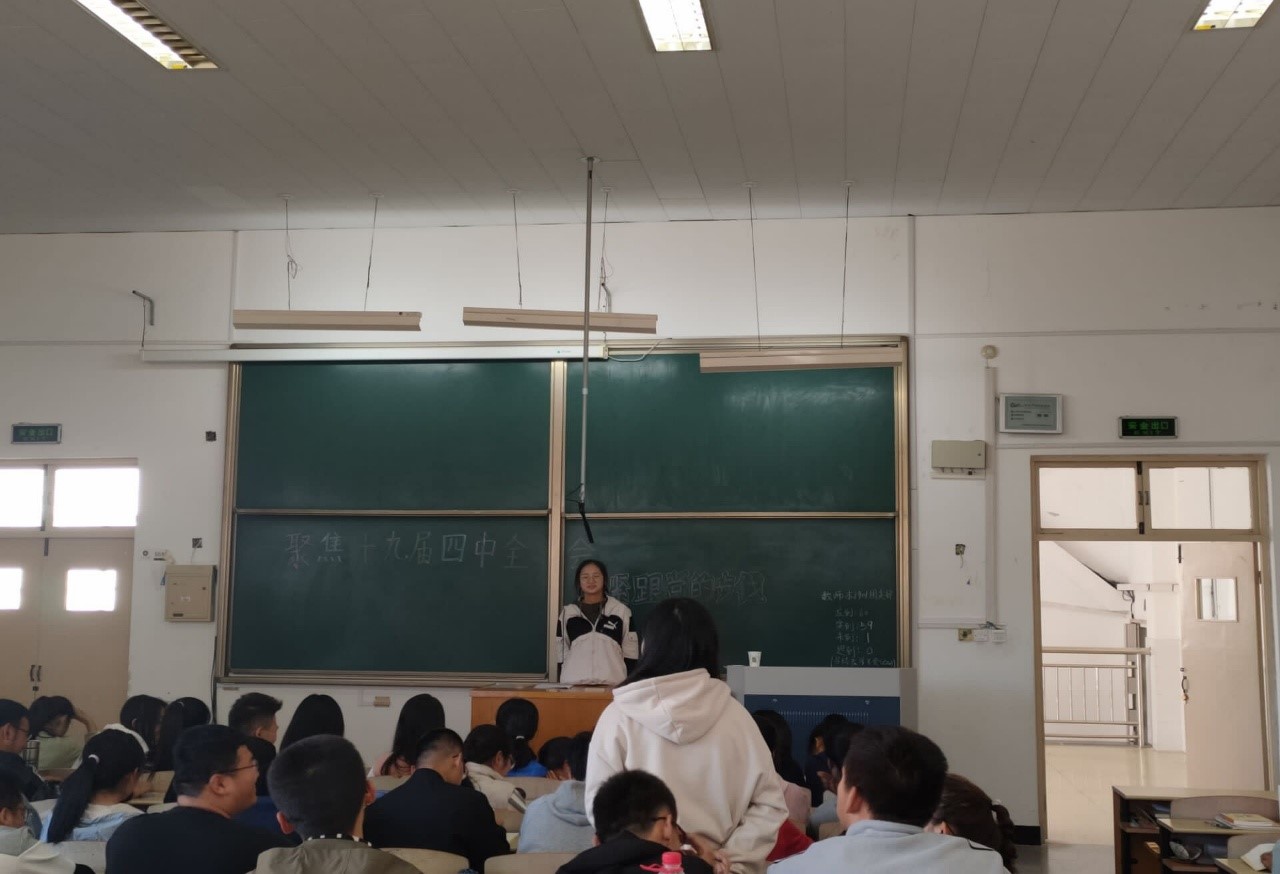 十九届四中全会指出,坚持和完善中国特色社会主义制度、推进国家治理体系和治理能力现代化是全党的一项重大战略任务。10月29日下午,学院组织2019级各团支部开展“聚焦十九届四中全会,紧跟党的步伐”主题团会。全体团员参加会议,会议由各支部团支书记主持。