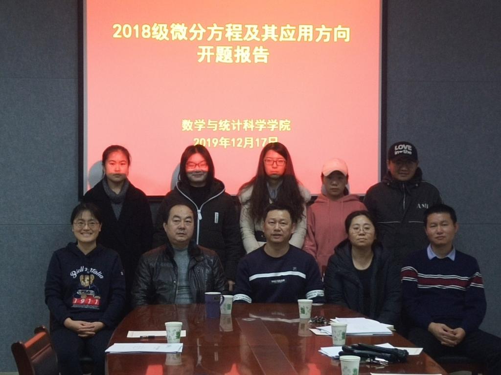 12月17日,2018级微分方程及其应用方向研究生开题报告会在南区四号教学楼309会议室举行。出席本次开题报告会的有沈春教授、孙梅娜教授、樊永红副教授、王琳琳副教授以及郑甲山副教授。