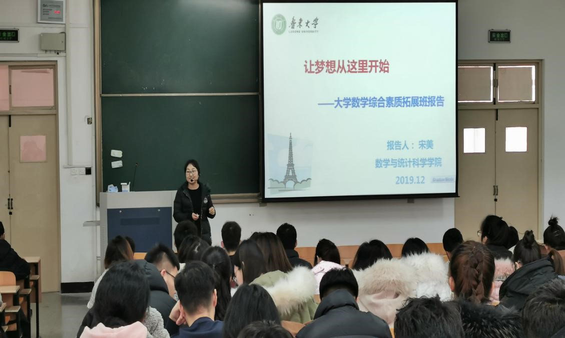 12月17日下午,学院在420多媒体教室举办考研复习指导报告会,报告会由数学系副主任宋美老师主讲,2017级统计系全体学生参加了报告会。