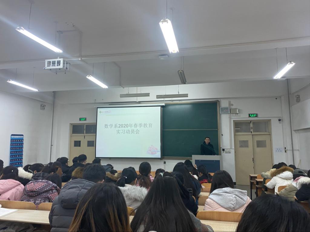 为贯彻实施师范专业认证理念,切实保证我校教育实习教学支撑各师范专业人才培养目标达成,顺利完成数学专业的2020年春季实习工作。1月8日,数学系召开春季学期教育实习动员大会。