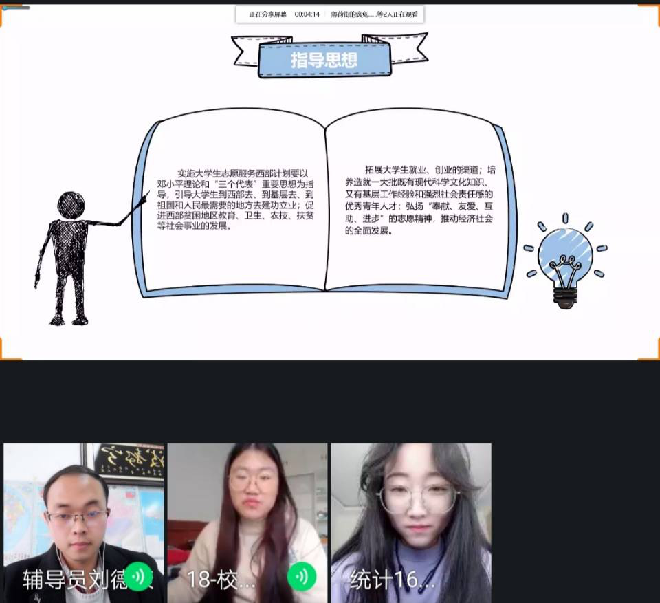 近日,学院利用腾讯会议平台开展大学生志愿服务西部计划“一对一”毕业生就业指导帮扶会。