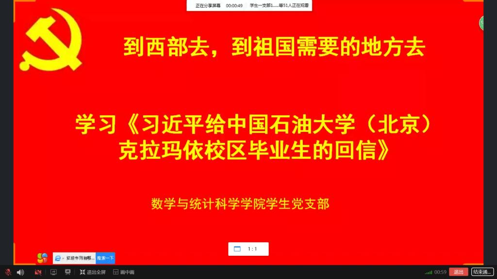 7月9日上午,我院学生党支部召开视频会议,集体学习《习近平给中国石油大学(北京)克拉玛依校区毕业生的回信》。