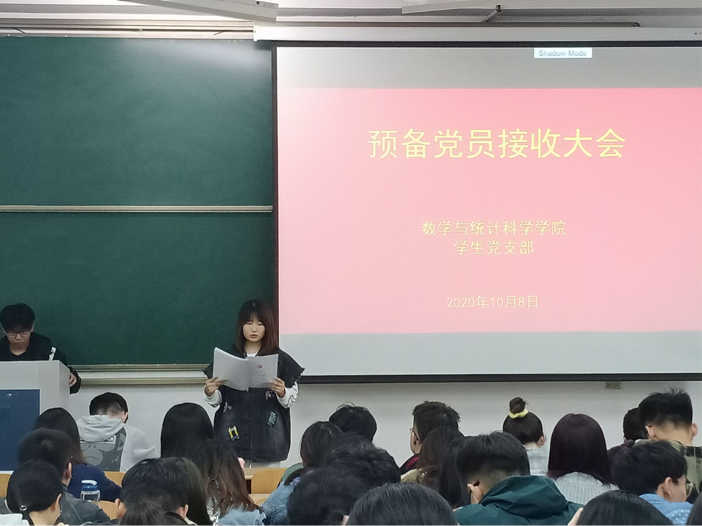 10月8日,学院学生党支部在南四教学楼420室召开预备党员接收大会,学生党支部书记都婷婷、副书记马亚杰、全体党员和发展对象参加本次会议。