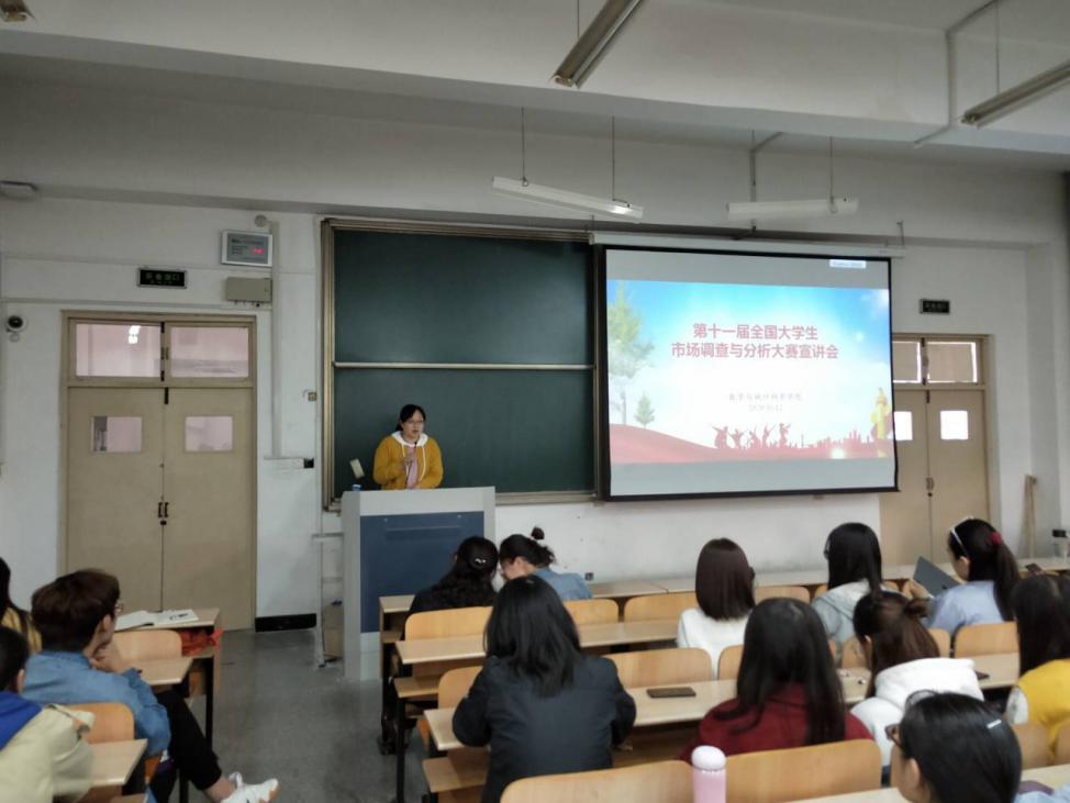 为帮助学生们更好的了解市场调查与分析大赛参赛意义及比赛规则,学院于10月12日下午举办了第十一届市场调查与分析大赛宣讲动员大会,团总支书记都婷婷、比赛主要负责老师王敏担任主讲人,2019级统计与应统专业全体学生和部分2018级、2020级学生参加了本次动员大会。