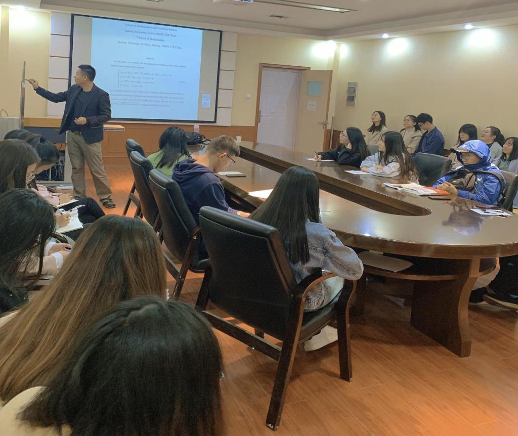 本次报告会主要介绍了非线性扩散和一般灵敏度的三维切莫切斯—斯托克斯系统的全局存在性和有界性问题。报告会上,郑甲山老师用通俗易懂的语言就学术问题做了简单的介绍,并且时刻保持与学生的交流互动,进行了学术上的沟通和答疑。报告会中,郑甲山老师展现了对待学术的严谨态度和学无止境的学习精神,让参加报告会的每一名研究生都感到受益匪浅。