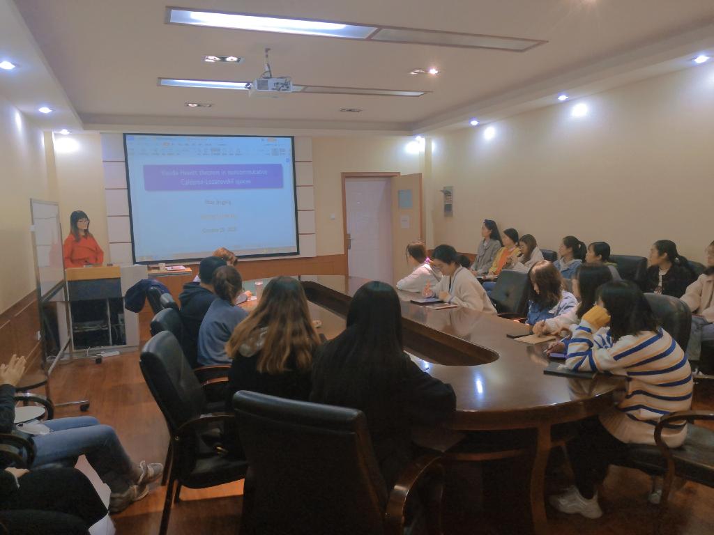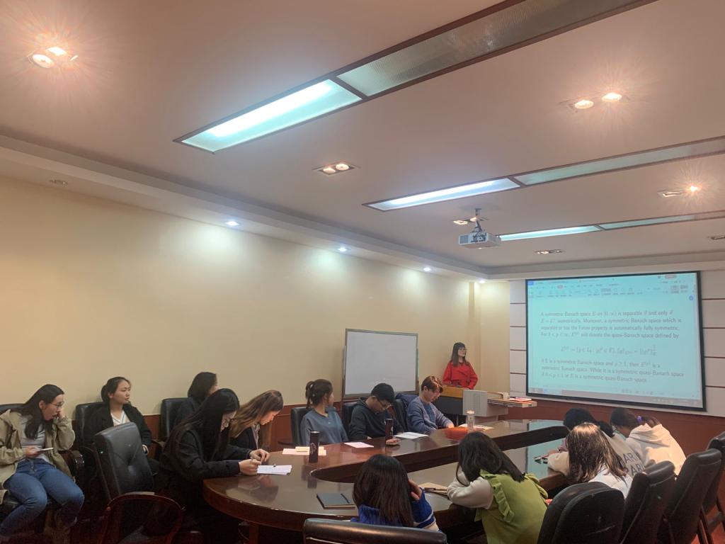 2020年10月29日,鲁东大学数学与统计科学学院的邵晶晶老师于南四教学楼411教室开展了一场题目为“非交换Calderon-Lozanovskii空间的研究”的学术报告。19、20级数学专业全体研究生参加了本次报告会。