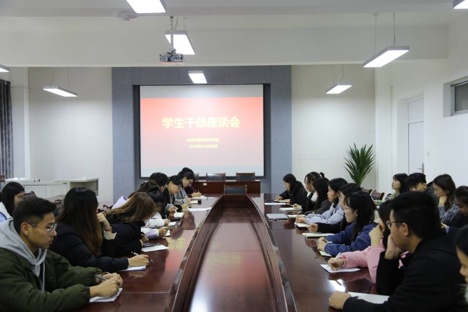 11月20日,学院召开学生干部座谈会,我院组织员都婷婷主持会议,全体辅导员、学生干部代表参加。