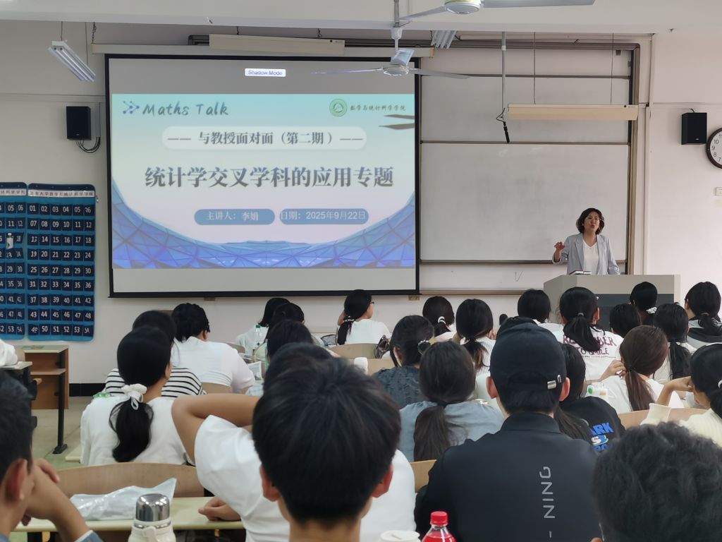 9月22日,统计系主任李娟副教授为2025级统计专业学生作专业认知教育报告,为刚踏入大学校园的新生们搭建起了解统计学专业的“第一座桥梁”。这是Maths Talk:与教授面对面系列活动之一。