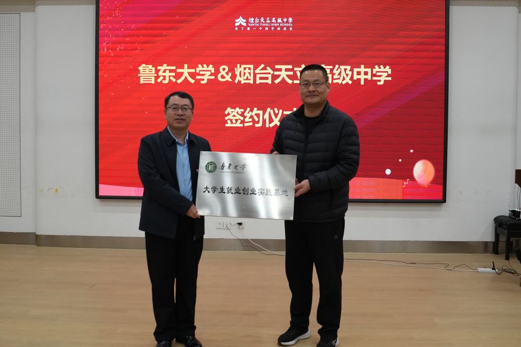 师生一行实地参观了烟台天立学校的教学楼、特色活动室等场所,沉浸式感受了该校的教学环境与育人氛围。随后,双方举行深度交流宣讲会,校长孙旭峰介绍了学校发展规划及人才需求,重点表达了在数学教学、竞赛指导等领域引进优秀人才的合作意向;鲁守栋则详细介绍了我院专业设置与人才培养特色,表达了深化合作、共赢发展的殷切期望。期间,我院优秀校友、现任该校教师的董禹伶分享了个人职场成长经历,为学弟学妹们提供了宝贵的就业经验与职业发展参考。活动最后,双方正式签约,共建大学生就业创业实践基地。