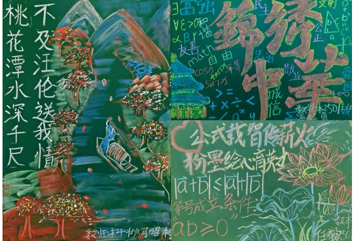 参赛学生紧扣“含学科知识、显学术功底”要求,或用黑白线条勾勒数学公式的逻辑之美,或用彩色粉笔演绎古诗的意境之韵,将学科知识与创意绘画巧妙融合,尽显扎实素养与创新思维。作品完成后,评委从创意、视觉效果、学科知识运用等综合打分,最终评选出一等奖、二等奖、三等奖及优秀奖;优秀作品在南区四号教学楼三楼东侧大厅展览。
