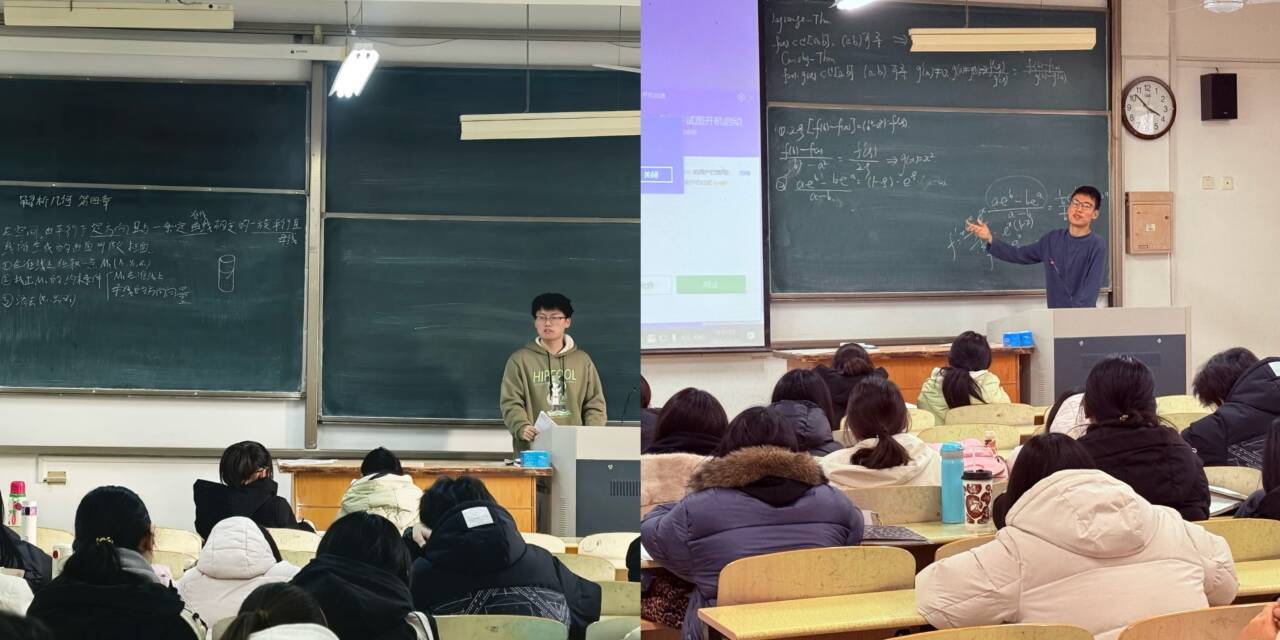 本次活动邀请两位优秀同学马昭树、王立本为大家开展期末答疑辅导。活动现场,他们以“精讲+拆解+梳理”的思路,系统讲授柯西中值定理与二次曲线核心知识,结合典型例题拆解应用思路。针对同学们日常学习中的难点、疑点,他们不仅现场逐一答疑解惑,还延伸拓展同类变式题,帮助同学们厘清解题思路、夯实学科基础、扫清知识盲区。